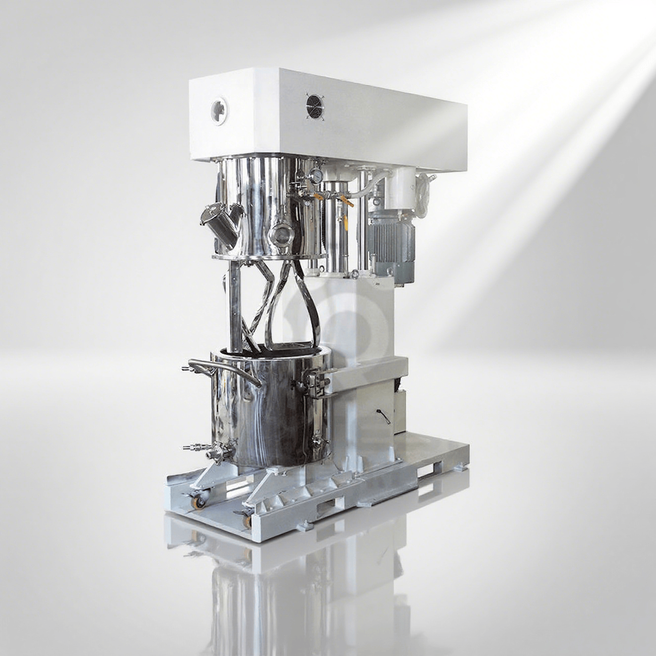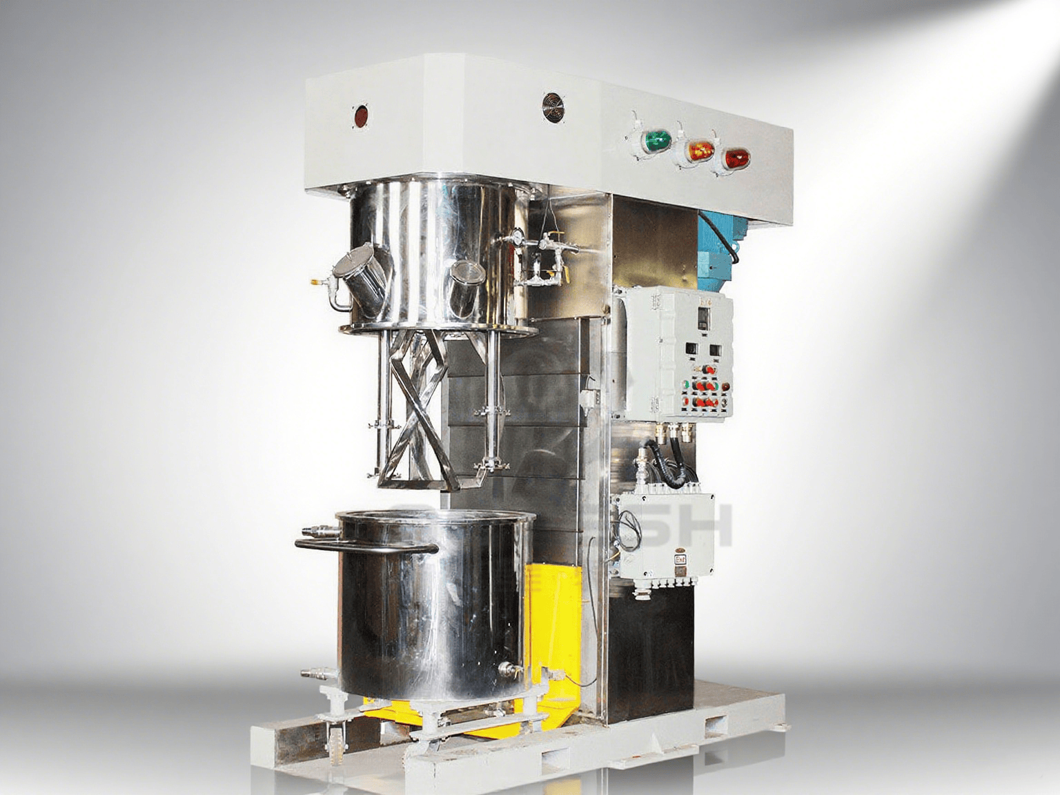 雙行星動力攪拌機雙行星動力混合機是一種新型且對多種混合液體、粉體進行攪拌、溶解、分散、均質效率好的攪拌設備。該設備配有高速、低速、活動刮板部件,低速攪拌部件采用行星齒輪傳動,攪 -