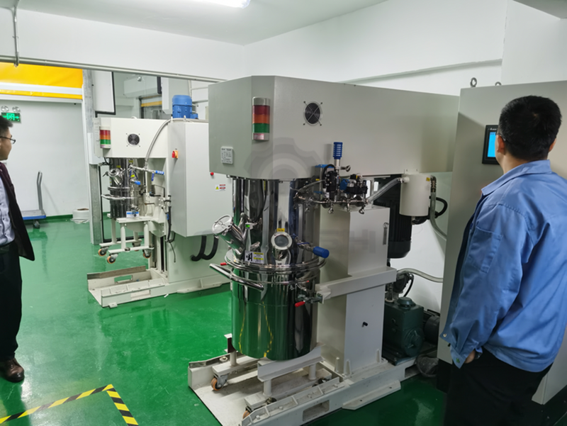 雙行星攪拌機雙行星混合機的攪拌槳葉,在公轉的同時也自轉,使罐體內物料上下及四周循環(huán)運動,從而可在很短時間內達到混合(混煉)效果。罐體內壁為大型立車精加工,再經大型拋光機自動 -